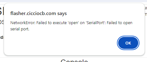 That's what I have. It's a no-go for me, thus far...tried every darned thing. The COM-Port shows-up in the list but all I get is: ![]() No response from the Annex32 guys. Googled the message and tried everything including switching from a W11 to W10 system. Downloaded the toolkit, the COM Port shows up on the list, attempt to flash and it complains that the COM port doesn't exist. The USB-C connector is the correct orientation. I power-up, holding the Boot button so that all I have is a green LED. The COM Port even shows "J-Tag (something-or-other)" |