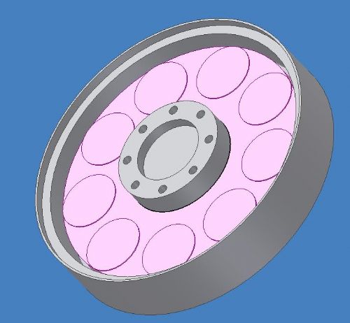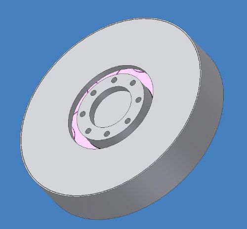 The assembly is designed so that the rotor is centred between the bearings, and all the torque from the blades is transferred directly to the magnet rotors. The stator is closely coupled to the yaw box with the short stub axle. The gap between the stator hub and the rotor is visible. The electrical wiring will exit the assembly through alignment holes in the coupling between the stator and the stub axle. The stator will be clamped between a metal ring and the axle flange mount and be aligned on a step on the flange, yet to be drawn on the pic. The design makes a compact unit that is sealed from blown sand and rain and the internals are well protected from direct sun, while allowing ventilation for cooling. I have not shown assembly bolt holes, or jacking bolt threads in the final back magnet plate, or bolt holes in the bearing hub. The machining is progressing as is the winding of stator coils. Gordon. become more energy aware |