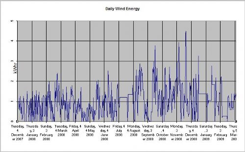 Repost of missing post. This thread is almost a book! GWatPE wrote..... Hi imsmooth, I am intending that my new AxFx mill spins whenever my Davis cup anemometer spins. < 1kph. I have noticed that ball bearings seem to offer more drag if they are stopped for long periods. My new wooden blades that I carved are thin in section [low form drag] and have high aspect. A spinning windmill has more chance of harnessing the passing wind gusts than one that has to be started each time a small gust comes along and then stops again. The battery is spending more time at the float voltage. The small amount of power captured supplements the continuous small draw from the inverter laptop, and numerous controller systems connected. Here is a graph of the last year or so wind energy harvest at my place. Gordon. Hey Gordon I've lost that picture, could you repost it? Glenn The best time to plant a tree was twenty years ago, the second best time is right now. JAQ |
