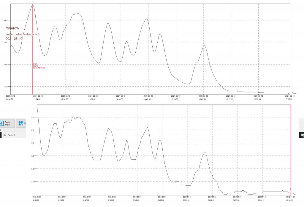 I was quite surprised to see the temperature of that logger get to 25 a couple of times  ...  yet the ambient never went past 16.