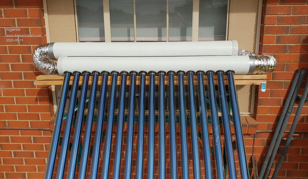 I should also mention that my evac tube array is only 1,415mm wide  ...  and two pv panels are 2,000mm wide. I'll give it a head start now that I'm getting a little more confident.