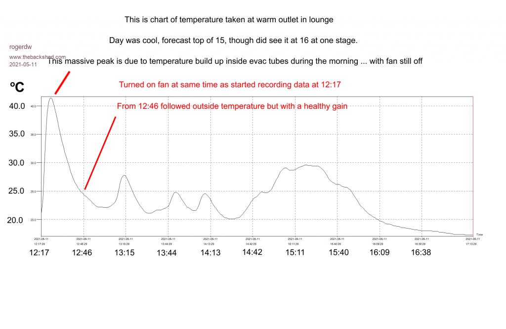 I probably sound like a miser, but I'm still hanging off lighting the fire until I see just how much (or not) warmth we can get out of this thing. So far it's looking really promising  ...  and I can see a double width device with 36 tubes up on the roof being very worthwhile  ...  but that may just be my optimism showing through at this stage.
