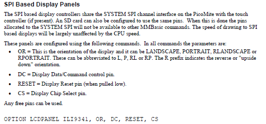 We keep getting back to the manual, I'm afraid. :( You have to look up every command that you want to use to see how it works in MMBasic - not Spectrum BASIC or Free BASIC or Apple BASIC or Commodore BASIC or any other variation. PRINT sends text to the console. TEXT sends text to a graphical display. CLS clears a graphical display. You have to get it into your head that the console and graphic displays are separate and both can be attached to the same PicoMite at the same time. They work independently, using their own commands, and have different capabilities. When you write a text-only program its output goes to the console by default, the graphical display is ignored. It's a good way to experiment with MMBasic for the beginner. Then you can modify it - changing PRINT commands to TEXT (with other suitable changes, of course) to send the output to a LCD display. I know you want to bypass all this "boring" stuff and get your program written, but you are making it very difficult for yourself in the long run. You aren't learning how and why things work in a particular way. I can assure you that MMBasic on the PicoMite is currently pretty bomb-proof. There are probably still bugs (all software has them) but none that most people will come across under most circumstances. It's almost certain that if something doesn't work you've done something wrong. The first step is to try to isolate the faulty bit of code and write some test routines to see where you've made the error. You may have to re-write something. You'll probably have to check commands in the manual as you go along. The built-in editor is simple and quick to use, even if you don't like it. :) It has the big advantage that you can switch to Edit mode by pressing F4 and back to command mode using F1. There's no uploading to the PicoMite, everything is self-contained. While in command mode you can quickly save or restore flash slots, so you don't *have* to have a SD card. Yes, there are more flexible editors but you don't need them for learning MMBasic. In fact, by breaking up the programming flow, they get in the way of the learning process. You are having to learn MMBasic *and* an editor/IDE at the same time. Far better to just learn one at once. Mick Zilog Inside! nascom.info for Nascom & Gemini Preliminary MMBasic docs & my PCB designs |