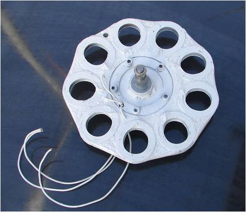 Output figs just to hand are 60rpm gives 18VAC between phases, so this will give 24V battery charging at under 100rpm. Looks like a series cap config to the 24V bank will suffice. Power limited to approx 150W with the cap sizing. A cap voltage doubler for the 48V battery will then add to the loading, followed by direct coupling to 48V at around 200rpm. This will provide a steady charging of my 24V house inverter UPS battery, and surplus power will be directed to the appliances connected on the grid side at the upper power levels only. A fair bit of the wind energy from my F&P mill is missed in the low wind energy region,[a decogged F&P still sits idle a lot of the time], so the AxFx will cover this well. My prime objective is to top up the battery first. I will now have 2 AxFx mills covering this aspect. I still have the rear plate fastening screws to drill and tap and then the unit can be wind tested. The overvoltage protection has worked well on the F&P, so it should not be too much more before real testing can begin. Gordon. become more energy aware |
