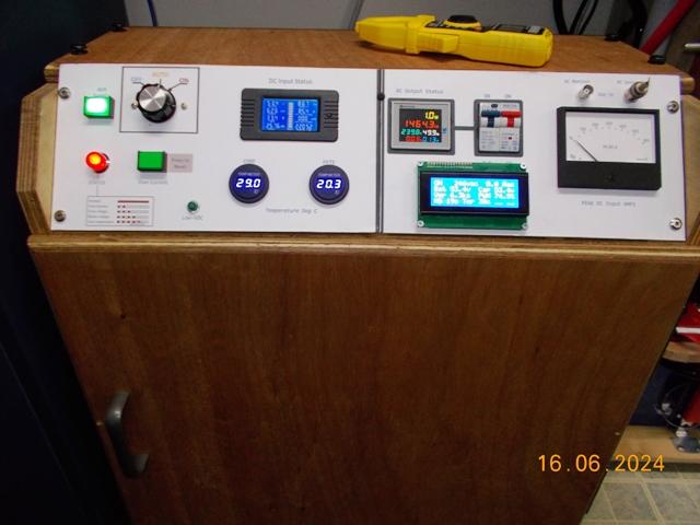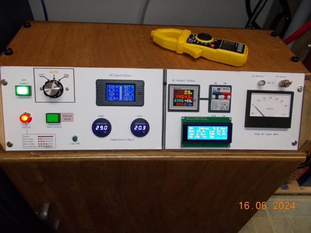 Finally got the LCD mounted in the main Inverter. The only spot available did not have any space behind the panel to allow mounting the LCD from behind. I used the small LCD backpack Nano carrier board designed by wiseguy, and fitted a ribbon cable from that PCB to the LCD module. This allowed the LCD to mount flat on the front panel, with 4 tiny spacers to just clear the LCD metal work on the back of the LCD module. A small slot behind the LCD allows a ribbon cable to lay flat with no signs of any connections, it plugs into the small Nano carrier board mounted 100mm away. The only problem I encountered was - the LCD displayed garbage - some unnamed dumb arse forgot that he had written the LCD code for a quick and dirty veroboard Nano carrier to mount the test LCD on a few months back. After wasting an hour, I'm getting old, the penny finally dropped, a quick change to the code for pin assignments and it worked perfectly. I need to make a small black cover with an LCD display cutout, it should look better then. . NANO:Inverter V 8.2ks - Linux AvrDude GUI script V4.1 |