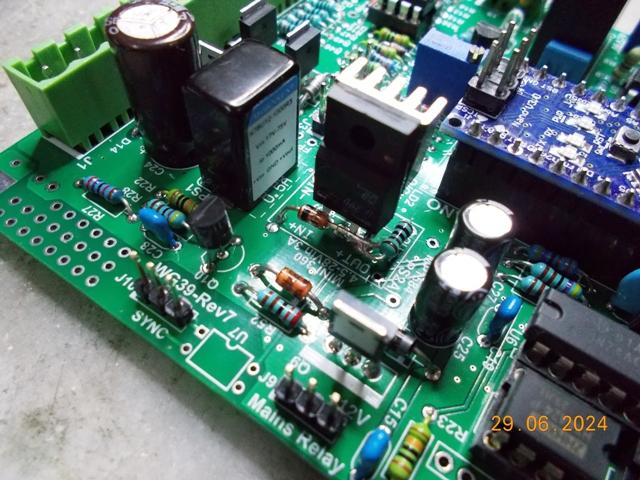 Built the New R7 controller board, happy to see it run first go, and currently running the test inverter. I used the KA7805 gated linear reg, generously supplied by wiseguy. I mounted it in the existing location and added a tiny stick on heatsink, [I will put a clip on it] I don't want it falling off into the controller one day. It runs fine without one, but it runs "finer" with one. I'm going to use that handy breadboard area (bottom front Left on PCB) to fit a 2 pin terminal for my DC over current input. . Edited 2024-06-29 08:32 by KeepIS NANO:Inverter V 8.2ks - Linux AvrDude GUI script V4.1 |