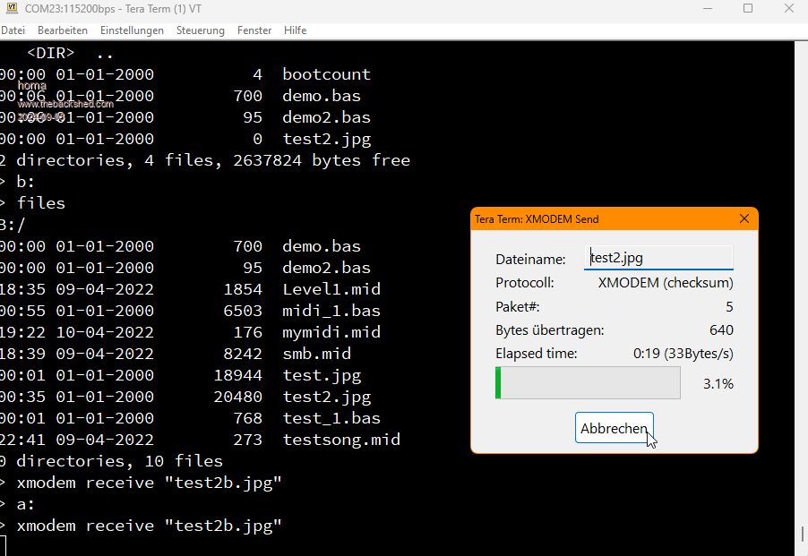 you supposed to use mmedit control centre or teraterm to tranfer win file to say mmbasic a: loads of fun
