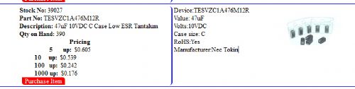 Gday Bryan, An excuse for a few more `sherbets' in your `cave' while you wait? I know what you mean about price, I bought mine from element14 (not arrived yet) because I was ordering a couple of PIC32MX150's and their price was were $2.16 + GST each (for the Caps NOT the Pic32)... but free post.. You can get a 10V Low ESR 47uF from Rockby.com.au for 60c ea.. I assume the 10V shouldnt be an issue (6Volt is quoted).. See this image
